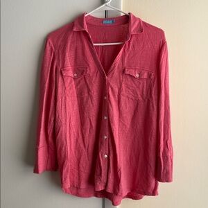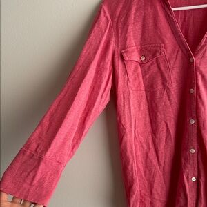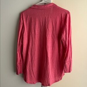 J. McLaughlin Brynn Pink Linen Blend 3/4 Sleeve Button Up Shirt with Pockets