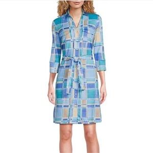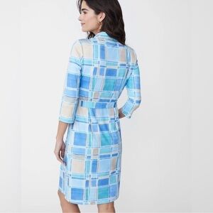 J. McLaughlin Brynn Tile Print Jersey Knit Collared V-Neck 3/4 Sleeve Dress NWT