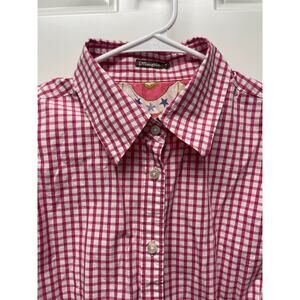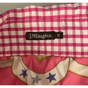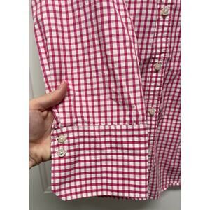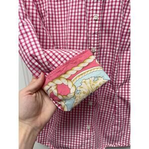 J. McLaughlin Button Down 7/8 sleeve top pink gingham silk flip cuff size 10