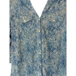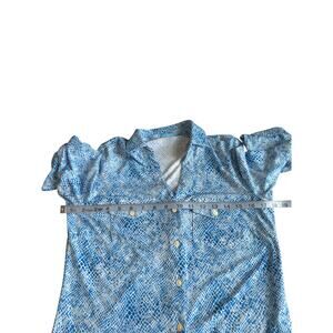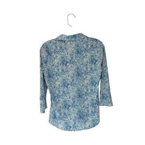 J. McLaughlin Button Up Blouse Blue White Stretch Croc Print V-Neck Size XS