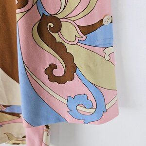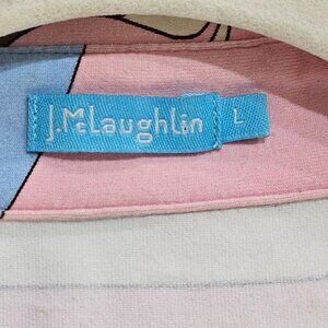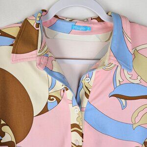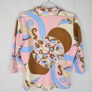 J. McLaughlin Button-Up Knit Shirt Large 70's Retro Abstract Print Pink Brown