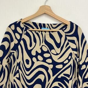 J. McLaughlin Campbell Boat Neck 3/4 Bell Sleeve Preppy Retro Puddle Print Dress XS