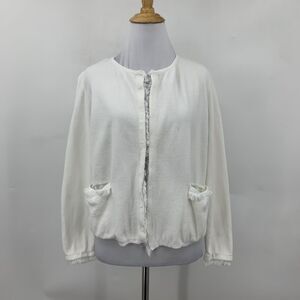 J. McLaughlin Cardigan Womens S Small Fringe Hem Open Front Collarless Cropped