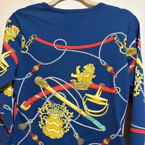 J McLaughlin Catalina Cloth Blue Equestrian Lion Rope Signature 3/4 Sleeve Tee