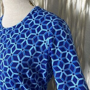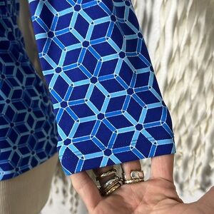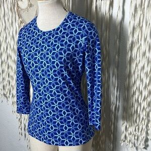 J. McLaughlin Catalina Cloth Bright Blue and Aqua Quarter Sleeve Top Size Small