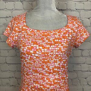 J McLaughlin Catalina Cloth Cap Sleeve Orange Tile Print Dress Size S