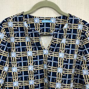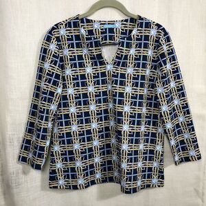 J. McLaughlin Catalina Cloth Carly Top Womens M Geo Floral Notched Neck Preppy