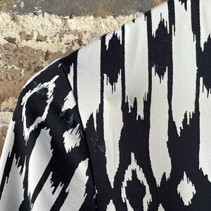 Geometric ikat print. Elbow length three quarter sleeves.