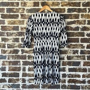 Stylish black and white patterned dress perfect for any occasion. This elegant piece offers a chic look with its bold design.