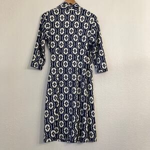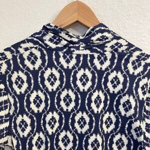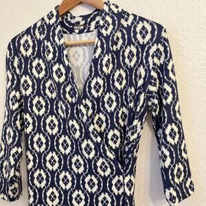 J. McLaughlin Catalina Cloth Faux-Wrap Dress Small Navy Geometric Office Stretch