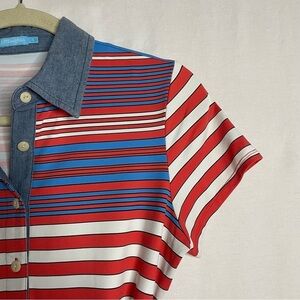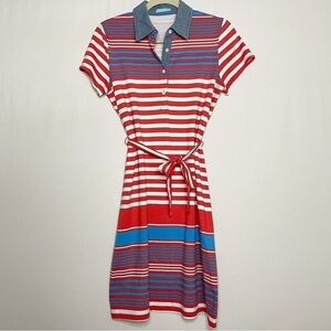 J. McLaughlin Catalina Cloth Striped Print Tie Waist Chambray Cotton Shirt Dress