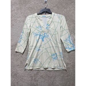 J. McLaughlin Catalina Cloth Top 3/4 Sleeve V-Neck Tunic Beads & Tree Size Small