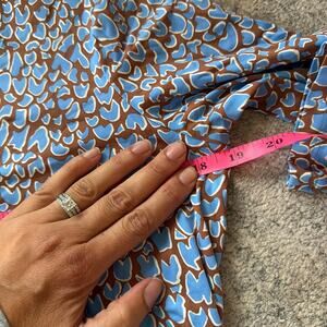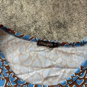 J McLaughlin Catalina Cloth Top Shirt Blue Brown Artsy Abstract 3/4 Sleeve M