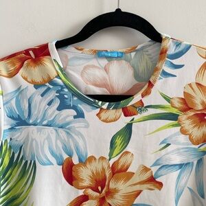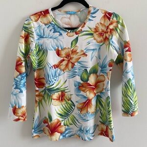 J. McLaughlin Catalina Cloth Tropical Print 3/4 Sleeve Top Size XS