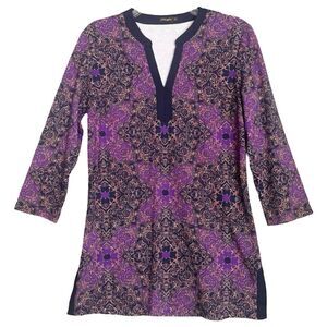 J. McLaughlin Catalina Cloth Tunic Top Women's Medium Purple Blue Floral V Neck