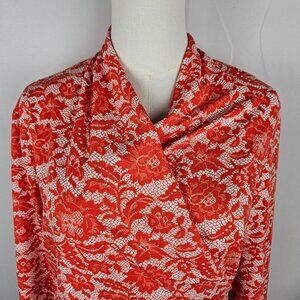 J. McLaughlin Catalina Faux Wrap Top Size Large Red Floral Lace Print