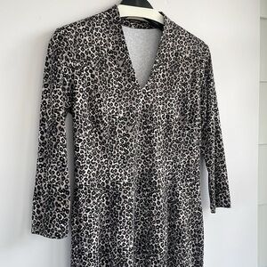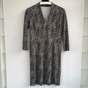 J. McLaughlin Catalina Ivana Sheath Leopard Print V Neck Dress Size Small