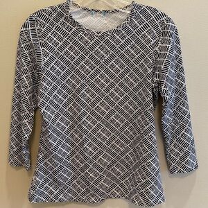 J McLaughlin Catalina Tee Crew Neck 3/4 Black White Geo Print S