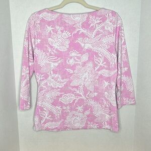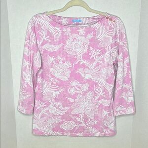 J McLaughlin Catalina Top Medium Pink Peacock Floral Nylon Spandex Stretch