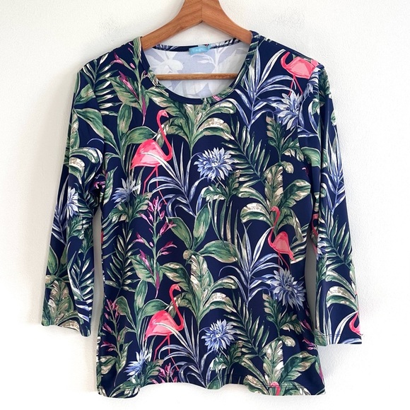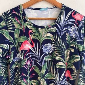 J. McLaughlin Catalina cloth tirpical Floral Flamingo Print Women's Top large