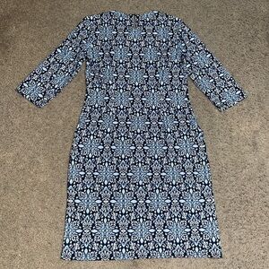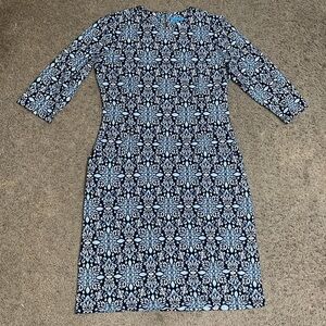 J. McLaughlin Catalyst 3/4 Sleeve Crew Neck Catalina Cloth Dress Blue Medallion
