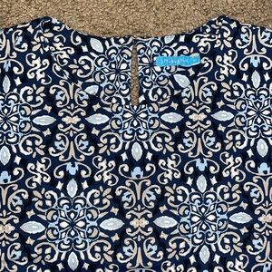 J. McLaughlin Catalyst 3/4 Sleeve Crew Neck Catalina Cloth Dress Blue Medallion