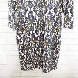 J. McLaughlin Catalyst Damask 3/4 Sleeve Midi Sheath Dress Women's Size Large