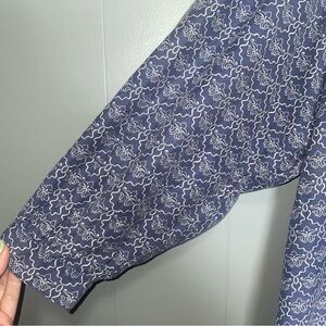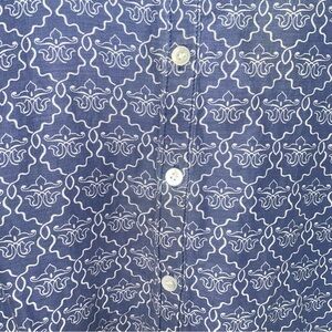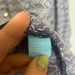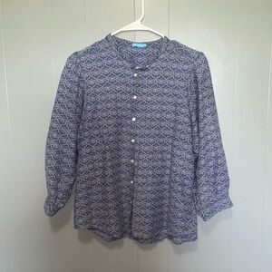 J. McLaughlin Chambray Blue and White Cotton Silk Blend Button Down Blouse Mediu