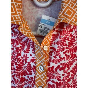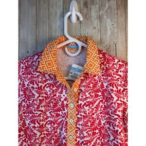 J. McLaughlin Court Polo Womens XS Red Orange Floral. Brocade Stretch Athletic