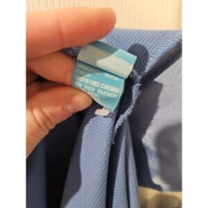 Vintage J. McLaughlin cropped pants in size 12, featuring a cyan blue color and textured cotton stretch material. The pants are in excellent preowned condition, with no defects mentioned.