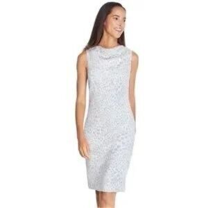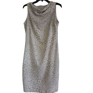 J. McLaughlin Delilah Sleeveless Sheath Dress. Silver/Gray Safari color . Faux suede fabrication. Cheetah animal print. Sleeveless. Cowl neck. Sheath silhouette. Hidden back zipper. Fabric contents: 92% polyester, 8% spandex