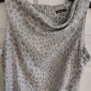 J. McLaughlin Delilah Sleeveless Sheath Dress. Silver/Gray Safari color . Faux suede fabrication. Cheetah animal print. Sleeveless. Cowl neck. Sheath silhouette. Hidden back zipper.  Fabric contents: 92% polyester, 8% spandex