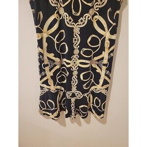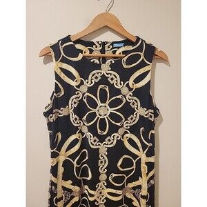 J. McLaughlin Dress Black/Gold Chain Equestrian Print Catalina Sleeveless XL