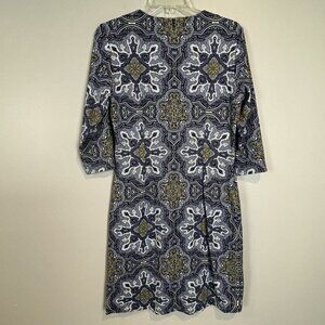 J McLaughlin Dress Blue Print Size Small 3/4 Sleeves
