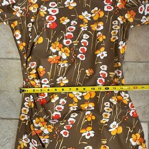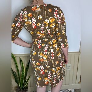 J. McLaughlin Dress Brown Red Orange Floral Slimming Ruched Catalina Womens Sz M