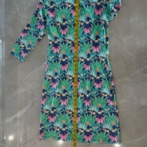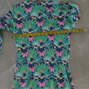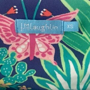 JMcLaughlin Catalina Cloth Vibrant dress featuring a tropical print with pink butterflies