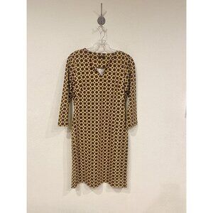 J McLaughlin Dress Womens Small Brown Yellow Geometric Print 3/4 Sleeve Pullover