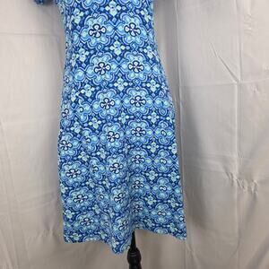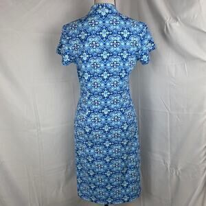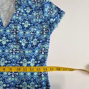 J McLaughlin Dress Womens XS Blue Green Retro Print Short Sleeve V-Neck Midi