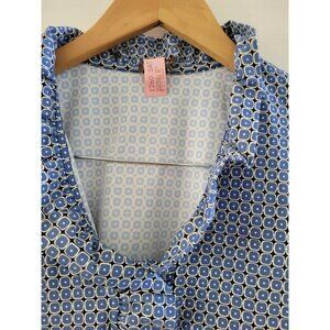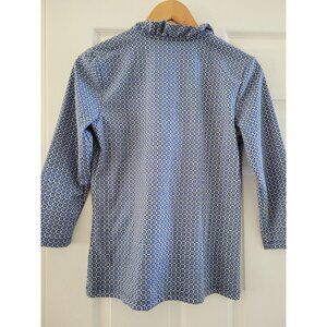 J. McLaughlin Durham Ruffle blue brown print Signature Catalina cloth Top size