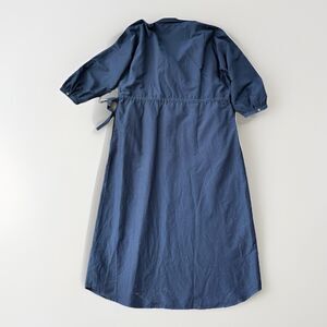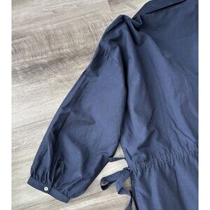 Bust 22.75. The J. McLaughlin Elayne Deep Navy Silk Blend Midi Dress in size L is a stylish and versatile piece perfect for various occasions such as travel, casual outings, and business meetings. Made from a luxurious silk blend material with a hint of cotton, this dress features a flattering V-neckline and 3/4 balloon sleeves, adding a touch of elegance. The midi length and shift/pencil dress style make it a chic choice for the summer, fall, and spring seasons, while the lightweight design and pockets add practicality to the overall look.
