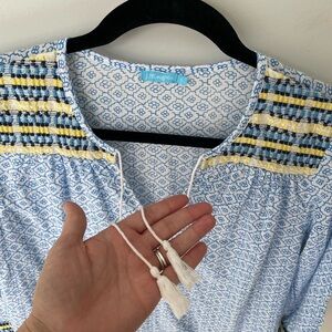 J. McLaughlin Embroidered Tassel Tunic Size Small Cotton Kurta Blue Yellow. 10