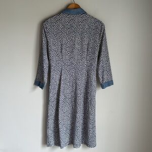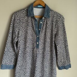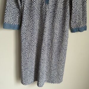 J McLaughlin Geometric Print Shift Dress Chambray Trim Small