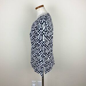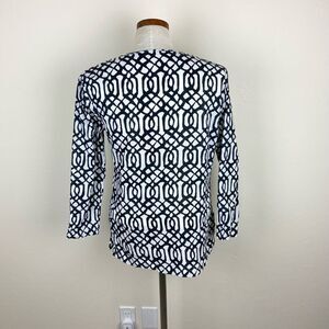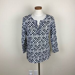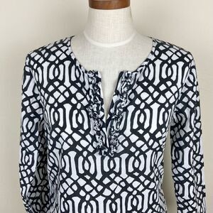 J. McLaughlin Geometric Ruffle-Neck Blouse - Black & White