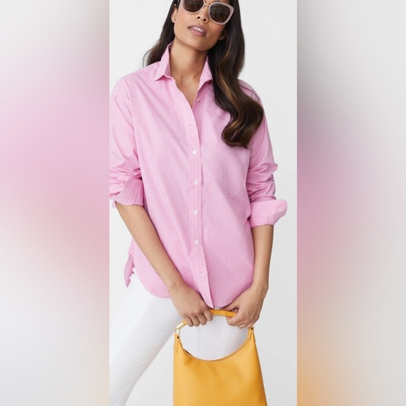 The J. McLaughlin Gingham Check Casual Or Dress Shirt in size Large is a stylish and versatile piece suitable for various occasions. Made from 100% quality cotton, this shirt features a classic fit with a collared neckline and button-up closure. The pink and white gingham check pattern adds a touch of preppy and springy style, making it perfect for casual outings or business meetings. With its long sleeves and button accents, this lightweight shirt with pockets embodies a comfortable and fashionable look for the warmer seasons.