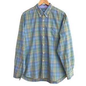 J McLaughlin Green Blue Plaid Cotton Button Down Long Sleeve Shirt Size …New
