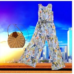 J. McLaughlin Green and Yellow Wide Leg Jumpsuit