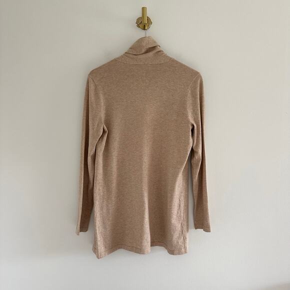 Details: J. McLaughlin Hasley Open-Front Knit Long Sleeve Cardigan- Size: S- Color: Tan Camel Brown - Material: 54% Cotton, 44% Modal, 2% Spandex- Features: Open-front, long sleeve, raglan sleeve, hand or machine wash, stretch, knit, comfort, breathable, casual.