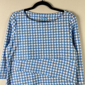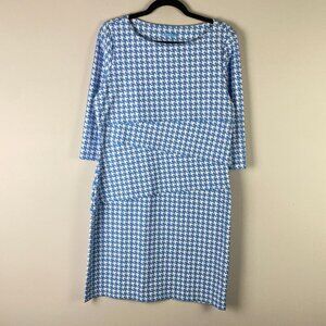 J. McLaughlin Houndstooth Nicola Dress Womens Large Blue White Catalina Cloth