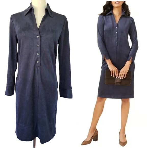 J McLaughlin Ilyia Navy Blue Faux Suede Shirt Dress Size XS
