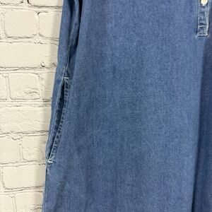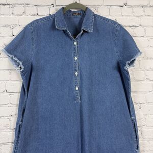 J McLaughlin Jones Denim Shift Dress Blue Women's L Raw Fringe Hem Trim Casual.